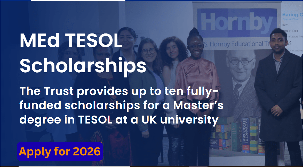 The primary objective of Hornby Scholarships is to enable scholars, on completion of their UK Master’s degree, to make effective contributions to the strengthening of English language teaching in their home countries.